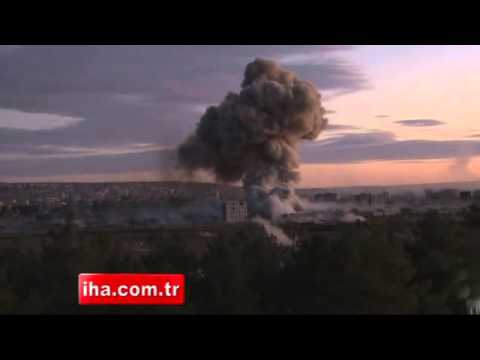Kobani’de IŞİD ile YPG arasında yaşanan çatışmalar bu akşam saatlerinde arttı. Karşılıklı yaşanan çatışmada silah sesleri Suruç’tan duyuldu. YPG’ye ait mühimmat deposu olduğu söylenen bölgede yaşanan küçük çaplı bir patlamanın ardından çok büyük bir patlama oldu. Yaşanan patlamada gökyüzüne doğru duman ve ateş yükselirken, mühimmat deposunun bulunduğu yere yaklaşık 50 metre mesafede büyük bir patlama daha yaşandı. Mühimmat deposu olduğu iddia edilen yere IŞİD militanları tarafından intihar saldırısı düzenlendiği iddia edildi. Yaşanan çatışmada çok sayıda can kaybı olduğu belirtildi. Çatışmalar devam ediyor.